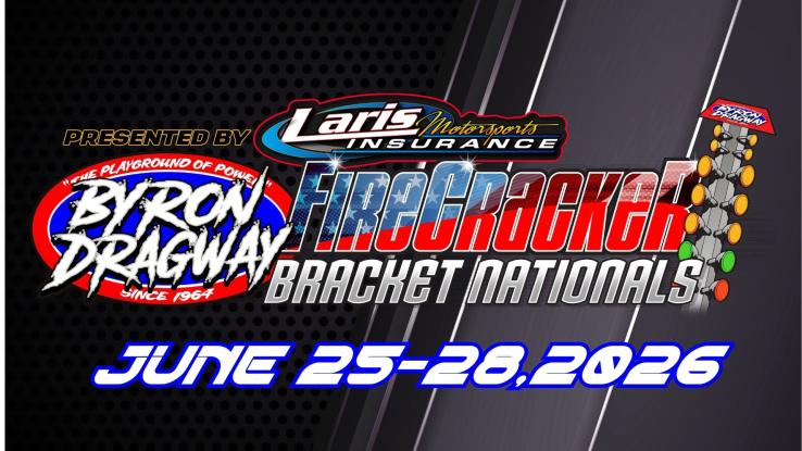 June 25 – 28 Thursday – Sunday 27th Annual Firecracker Bracket Nationals Byron Dragway **Pre-Entry Opens 03/07/2026 @9am - Limited to 256 total entries - Sold as weekend entry, no refunds, no waitlist, re-sell unused entries.** Jun 25 – 28 27th Annual Firecracker Bracket Nationals Byron Dragway Purchase Tickets Pricing Information Spectator $55.00 4-Day Spectator $55.00 3-Day Spectator $20.00 Friday Spectator $40.00 Friday-Saturday Spectator $20.00 Saturday Spectator $40.00 Saturday-Sunday Spectator $20.00 Sunday Spectator Driver $795.00 Firecracker Weekend Entry $150.00 Firecracker Thursday Warm Up Race Important Times Wednesday Gates Open for Parking 12pm-10pm Tech 3pm-8pm Thursday Gates Open 7:30am 1 Time Trail 8:30am Eliminations to follow. Friday-Sunday Gates Open 7:30am New Arrival Time Trials ONLY 8:30am Eliminations to follow. Location Byron Dragway 7287 N River Rd. Byron IL 61010 **Pre-Entry Opens 03/07/2026 @9am - Limited to 256 total entries - Sold as weekend entry, no refunds, no waitlist, re-sell unused entries.** Driver Information Spectator Information Back Please select the type of admission you would like to purchase 27th Annual Firecracker Bracket Nationals - Driver Purchase Tickets 27th Annual Firecracker Bracket Nationals - Spectator Purchase Tickets